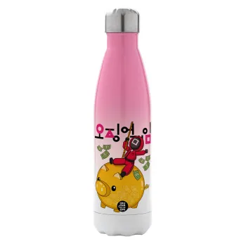 Squid game money pig, Μεταλλικό παγούρι θερμός Ροζ/Λευκό (Stainless steel), διπλού τοιχώματος, 500ml
