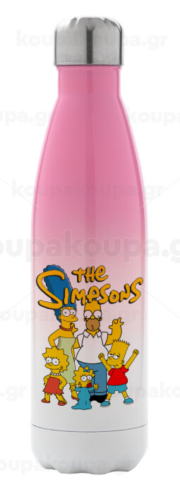 The Simpsons, Μεταλλικό παγούρι θερμός Ροζ/Λευκό (Stainless steel), διπλού τοιχώματος, 500ml