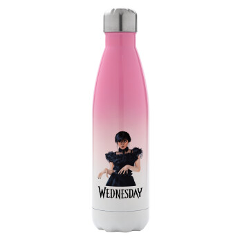 Wednesday Adams, dance with hands, Μεταλλικό παγούρι θερμός Ροζ/Λευκό (Stainless steel), διπλού τοιχώματος, 500ml