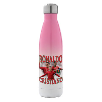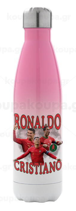 Κριστιάνο Ρονάλντο, Μεταλλικό παγούρι θερμός Ροζ/Λευκό (Stainless steel), διπλού τοιχώματος, 500ml