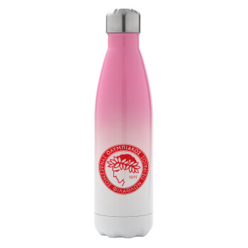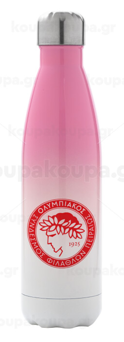 Ολυμπιακός, Μεταλλικό παγούρι θερμός Ροζ/Λευκό (Stainless steel), διπλού τοιχώματος, 500ml