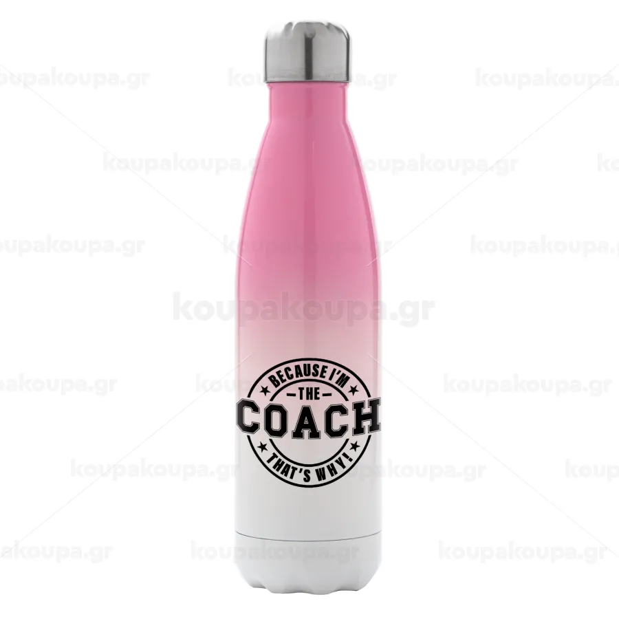 Because i'm the Coach, Μεταλλικό παγούρι θερμός Ροζ/Λευκό (Stainless steel), διπλού τοιχώματος, 500ml