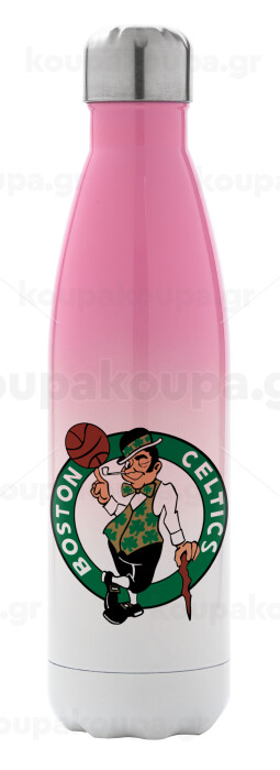 Boston Celtics, Μεταλλικό παγούρι θερμός Ροζ/Λευκό (Stainless steel), διπλού τοιχώματος, 500ml