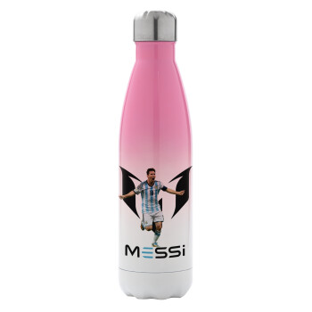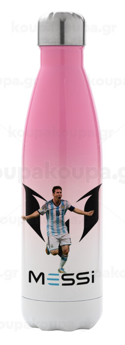 Λιονέλ Μέσι, Leo Messi, Μεταλλικό παγούρι θερμός Ροζ/Λευκό (Stainless steel), διπλού τοιχώματος, 500ml