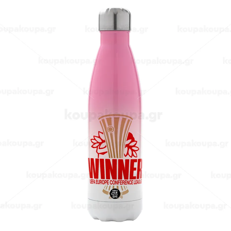 Europa Conference League WINNER, Μεταλλικό παγούρι θερμός Ροζ/Λευκό (Stainless steel), διπλού τοιχώματος, 500ml