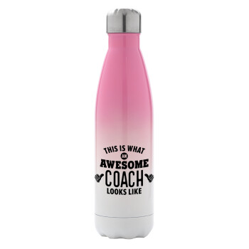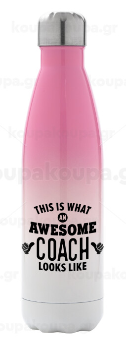This is what an awesome COACH looks like!, Μεταλλικό παγούρι θερμός Ροζ/Λευκό (Stainless steel), διπλού τοιχώματος, 500ml