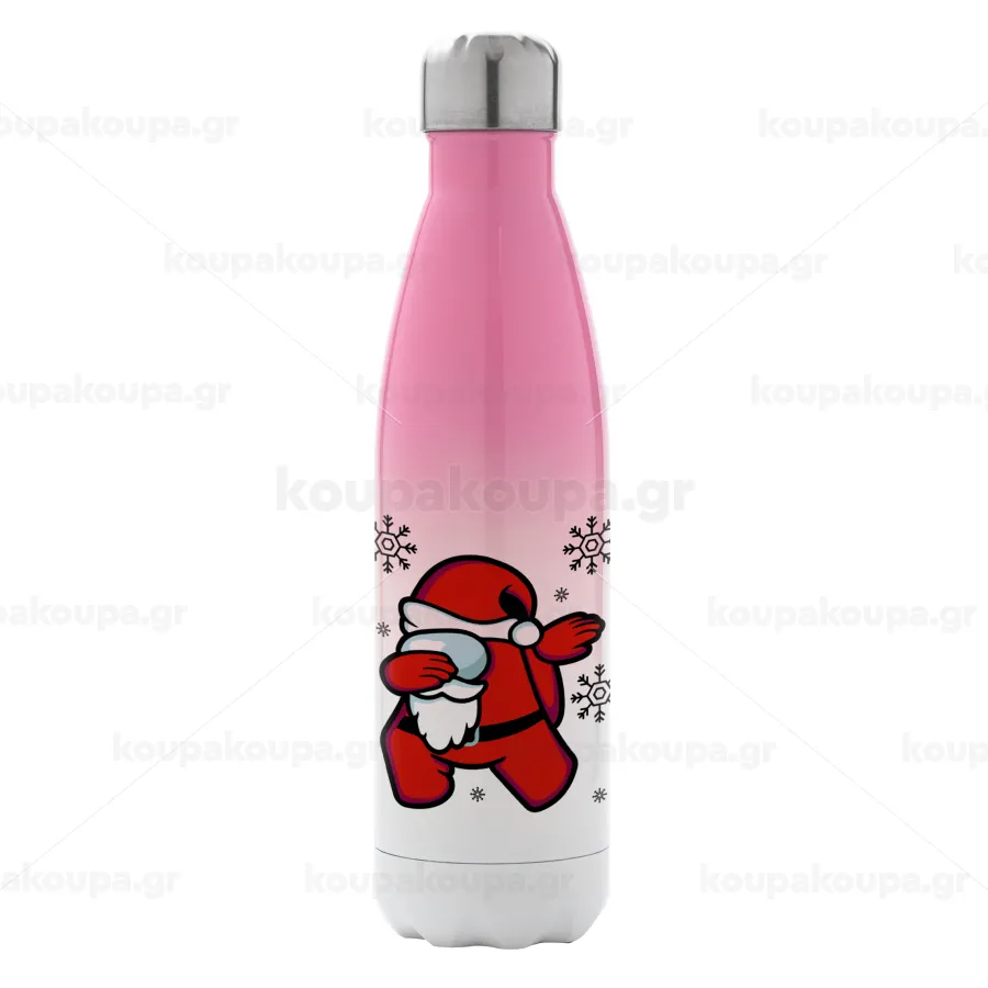 Among US Xmas, Μεταλλικό παγούρι θερμός Ροζ/Λευκό (Stainless steel), διπλού τοιχώματος, 500ml