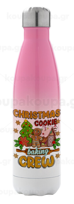 Christmas Cookie Baking Crew, Μεταλλικό παγούρι θερμός Ροζ/Λευκό (Stainless steel), διπλού τοιχώματος, 500ml
