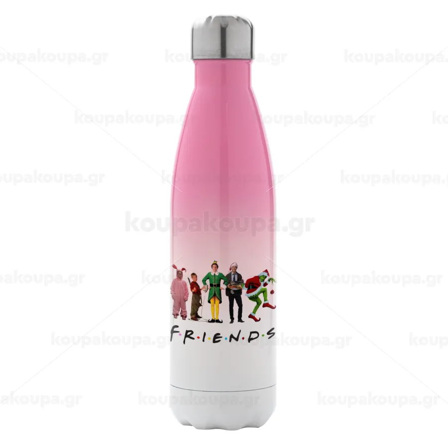 Christmas FRIENDS, Μεταλλικό παγούρι θερμός Ροζ/Λευκό (Stainless steel), διπλού τοιχώματος, 500ml