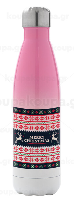 Merry Christmas Vintage, Μεταλλικό παγούρι θερμός Ροζ/Λευκό (Stainless steel), διπλού τοιχώματος, 500ml