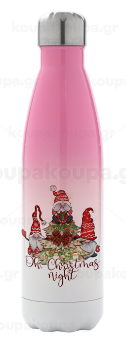 Oh Christmas Night, Μεταλλικό παγούρι θερμός Ροζ/Λευκό (Stainless steel), διπλού τοιχώματος, 500ml