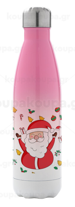 Santa Claus gifts, Μεταλλικό παγούρι θερμός Ροζ/Λευκό (Stainless steel), διπλού τοιχώματος, 500ml