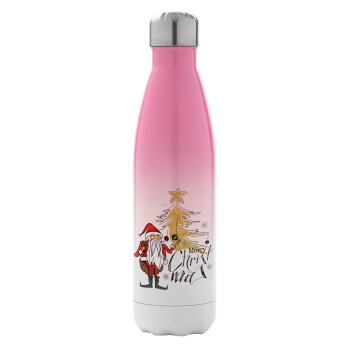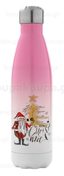 Santa Claus gold, Μεταλλικό παγούρι θερμός Ροζ/Λευκό (Stainless steel), διπλού τοιχώματος, 500ml