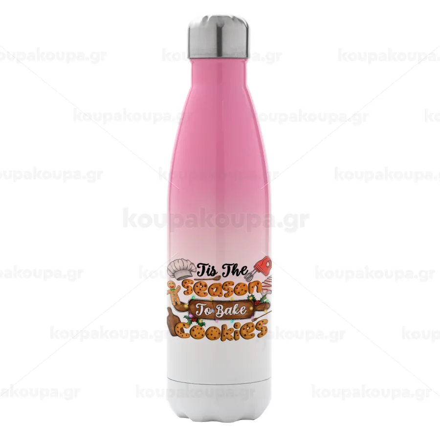 Tis The Season To Bake Cookies, Μεταλλικό παγούρι θερμός Ροζ/Λευκό (Stainless steel), διπλού τοιχώματος, 500ml