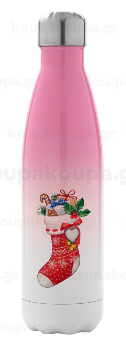 Xmas boot, Μεταλλικό παγούρι θερμός Ροζ/Λευκό (Stainless steel), διπλού τοιχώματος, 500ml