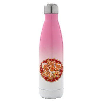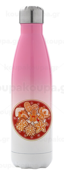 xmas cookies, Μεταλλικό παγούρι θερμός Ροζ/Λευκό (Stainless steel), διπλού τοιχώματος, 500ml