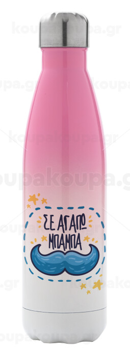Σε αγαπώ μπαμπά!!!, Μεταλλικό παγούρι θερμός Ροζ/Λευκό (Stainless steel), διπλού τοιχώματος, 500ml