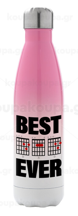 Best DAD Ever συγχορδίες κιθάρας, Μεταλλικό παγούρι θερμός Ροζ/Λευκό (Stainless steel), διπλού τοιχώματος, 500ml