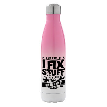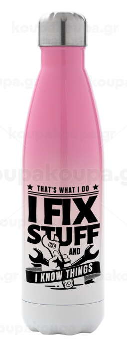 I fix stuff, Μεταλλικό παγούρι θερμός Ροζ/Λευκό (Stainless steel), διπλού τοιχώματος, 500ml