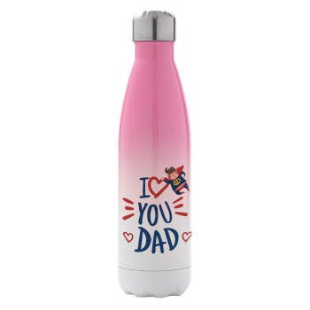 Super Dad, Μεταλλικό παγούρι θερμός Ροζ/Λευκό (Stainless steel), διπλού τοιχώματος, 500ml