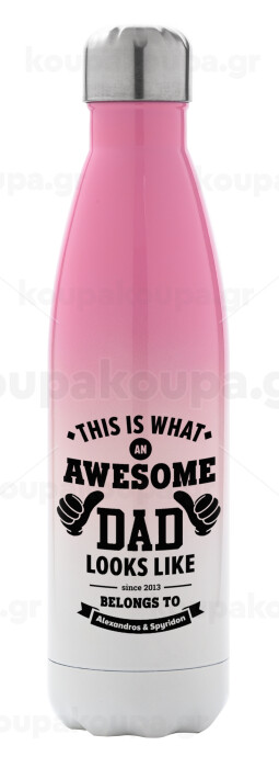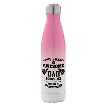This is what an Awesome DAD looks like, Μεταλλικό παγούρι θερμός Ροζ/Λευκό (Stainless steel), διπλού τοιχώματος, 500ml