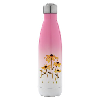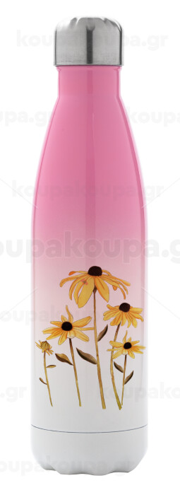 Daisies flower, Μεταλλικό παγούρι θερμός Ροζ/Λευκό (Stainless steel), διπλού τοιχώματος, 500ml