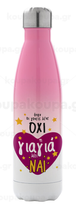 Όταν οι γονείς λένε ΟΧΙ, η γιαγιά λέει ΝΑΙ, Μεταλλικό παγούρι θερμός Ροζ/Λευκό (Stainless steel), διπλού τοιχώματος, 500ml