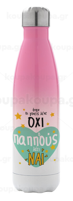 Όταν οι γονείς λένε ΟΧΙ, ο παππούς λέει ΝΑΙ, Μεταλλικό παγούρι θερμός Ροζ/Λευκό (Stainless steel), διπλού τοιχώματος, 500ml