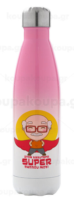 Στον καλύτερο Super παππού μου!, Μεταλλικό παγούρι θερμός Ροζ/Λευκό (Stainless steel), διπλού τοιχώματος, 500ml