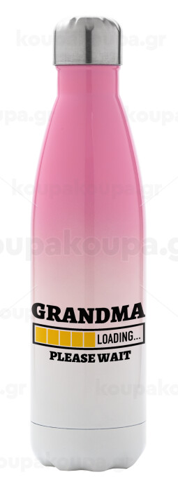 Grandma Loading, Μεταλλικό παγούρι θερμός Ροζ/Λευκό (Stainless steel), διπλού τοιχώματος, 500ml