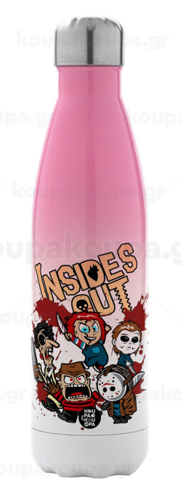 Halloween Inside out, Μεταλλικό παγούρι θερμός Ροζ/Λευκό (Stainless steel), διπλού τοιχώματος, 500ml
