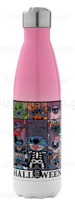 Stitch Halloween, Μεταλλικό παγούρι θερμός Ροζ/Λευκό (Stainless steel), διπλού τοιχώματος, 500ml