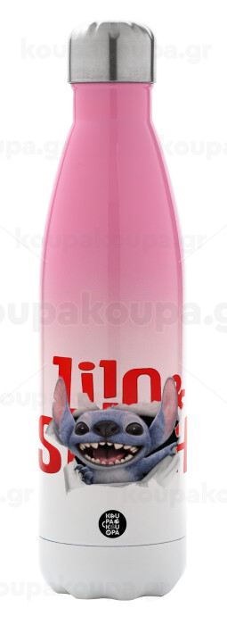 Stitch movie, Μεταλλικό παγούρι θερμός Ροζ/Λευκό (Stainless steel), διπλού τοιχώματος, 500ml