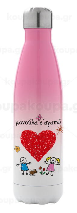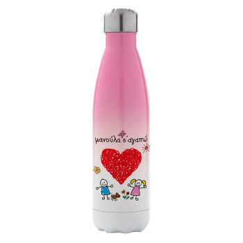 Μανούλα σ'αγαπώ!, Μεταλλικό παγούρι θερμός Ροζ/Λευκό (Stainless steel), διπλού τοιχώματος, 500ml