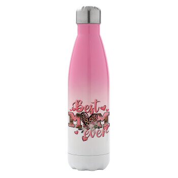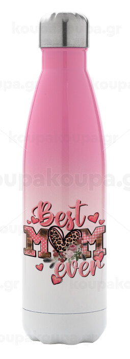 Best mom ever Mother's Day, Μεταλλικό παγούρι θερμός Ροζ/Λευκό (Stainless steel), διπλού τοιχώματος, 500ml