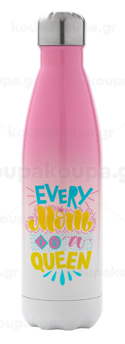 Every mom is a Queen, Μεταλλικό παγούρι θερμός Ροζ/Λευκό (Stainless steel), διπλού τοιχώματος, 500ml