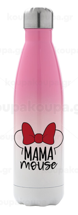 MAMA mouse, Μεταλλικό παγούρι θερμός Ροζ/Λευκό (Stainless steel), διπλού τοιχώματος, 500ml