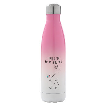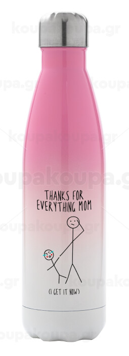 Thanks for everything mom, Μεταλλικό παγούρι θερμός Ροζ/Λευκό (Stainless steel), διπλού τοιχώματος, 500ml