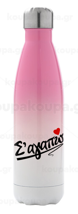Σ΄ αγαπώ!!!, Μεταλλικό παγούρι θερμός Ροζ/Λευκό (Stainless steel), διπλού τοιχώματος, 500ml
