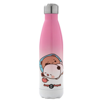 bubu + dudu, Μεταλλικό παγούρι θερμός Ροζ/Λευκό (Stainless steel), διπλού τοιχώματος, 500ml