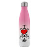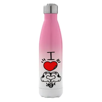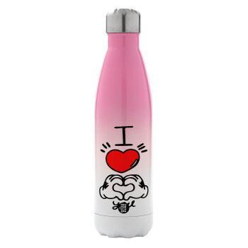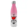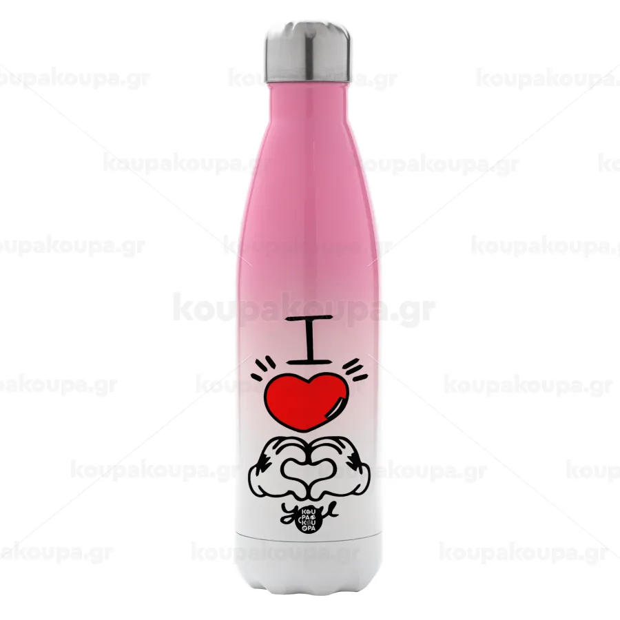 comics hands love, Μεταλλικό παγούρι θερμός Ροζ/Λευκό (Stainless steel), διπλού τοιχώματος, 500ml