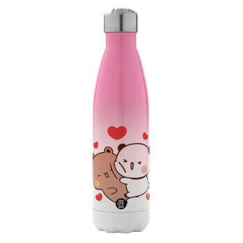 Bubu & Dudu, Μεταλλικό παγούρι θερμός Ροζ/Λευκό (Stainless steel), διπλού τοιχώματος, 500ml