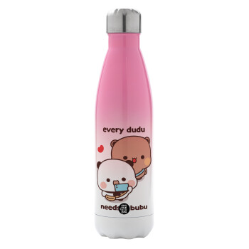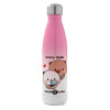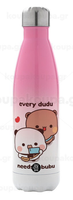 Every Dudu needs a bubu, Μεταλλικό παγούρι θερμός Ροζ/Λευκό (Stainless steel), διπλού τοιχώματος, 500ml