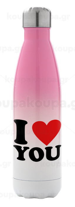 I LOVE YOU, Μεταλλικό παγούρι θερμός Ροζ/Λευκό (Stainless steel), διπλού τοιχώματος, 500ml
