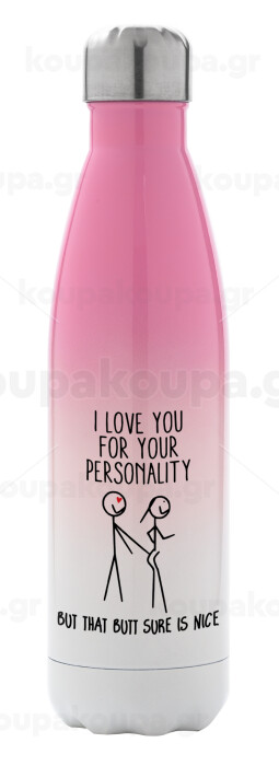 I Love you for your personality, Μεταλλικό παγούρι θερμός Ροζ/Λευκό (Stainless steel), διπλού τοιχώματος, 500ml