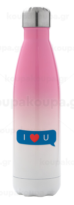 I Love You text message, Μεταλλικό παγούρι θερμός Ροζ/Λευκό (Stainless steel), διπλού τοιχώματος, 500ml