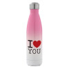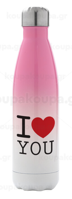I Love you classic, Μεταλλικό παγούρι θερμός Ροζ/Λευκό (Stainless steel), διπλού τοιχώματος, 500ml