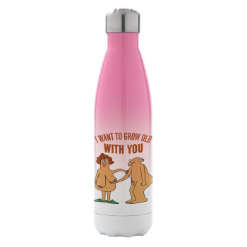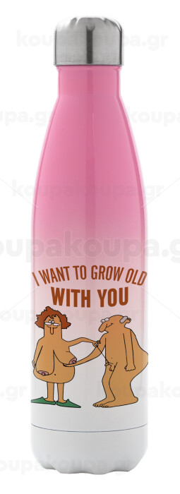 I want to grow old with you, Μεταλλικό παγούρι θερμός Ροζ/Λευκό (Stainless steel), διπλού τοιχώματος, 500ml