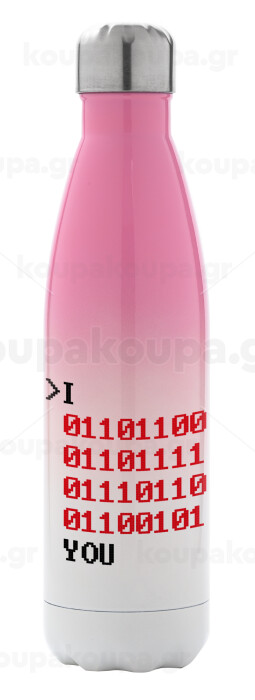 I .... YOU, binary secret MSG, Μεταλλικό παγούρι θερμός Ροζ/Λευκό (Stainless steel), διπλού τοιχώματος, 500ml