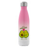 Let's avocuddle, Μεταλλικό παγούρι θερμός Ροζ/Λευκό (Stainless steel), διπλού τοιχώματος, 500ml